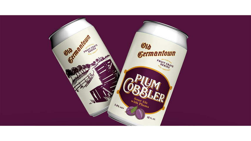 Old Germantown. A 120-acre farmstead settled in 1842 that only uses the finest Wisconsin ingredients. Their esthetic leans vintage with with a focus on craftsmanship and the cherished family heritage that comes from generations of Wisconsin farming. The Plum Cobbler can art is inspired by vintage can designs and typography. Including a custom illustration on the back highlighting a local farmer harvesting fruit for the beer.