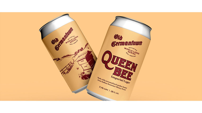 Old Germantown. A 120-acre farmstead settled in 1842 that only uses the finest Wisconsin ingredients. Their esthetic leans vintage with with a focus on craftsmanship and the cherished family heritage that comes from generations of Wisconsin farming. The Queen Bee can art is inspired by vintage can designs and typography. Including a custom illustration on the back highlighting the local farm where Old Germantown gets the honey for this beer.